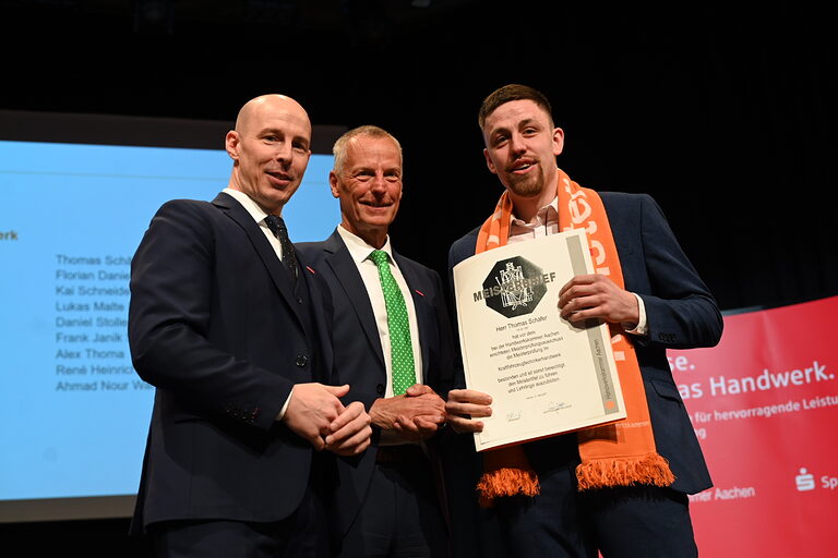 In feierlicher Atmosphäre erhielten 28 Meisterinnen und 235 Meister aus zwölf Gewerken ihre Meisterbriefe. Die Prüfungen hatten sie zwischen dem 1. März 2025 und dem 31. März 2026 abgelegt. Der jüngste Meister ist gerade erst 20 Jahre alt und kommt aus Düren, der älteste ist 52 Jahre und lebt in Eschweiler. Da viele Handwerkerinnen und Handwerker die Meisterausbildung direkt im Anschluss an ihre Gesellenausbildung beginnen, sind zwei Drittel von ihnen jünger als 30 Jahre.