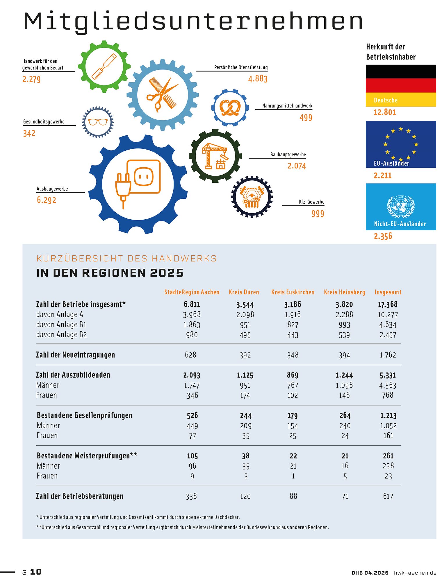 Handwerkskammer Aachen - Jahresbericht 2025Statistik + Bedeutung des regionalen Handwerks